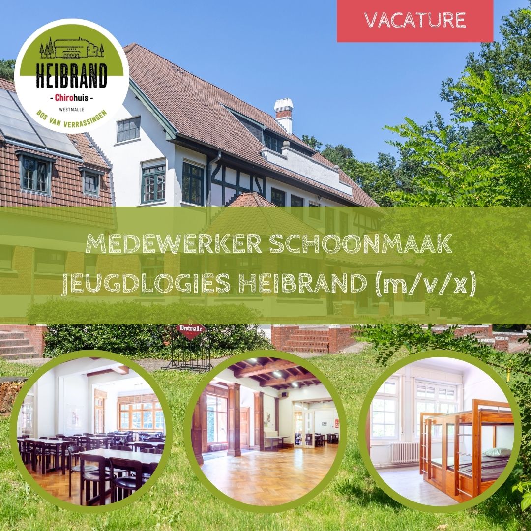 Chirojeugd vzw zoekt een medewerker schoonmaak (m/v/x) voor haar jeugdverblijfscentrum Heibrand in Westmalle. Heb je oog voor detail en word je blij van orde en netheid? Dan heeft Heibrand de ideale job voor jou! Heibrand realiseert jaarlijks 20.000 overnachtingen in de volpensionformule voor jeugdwerk, scholen en jongeren.